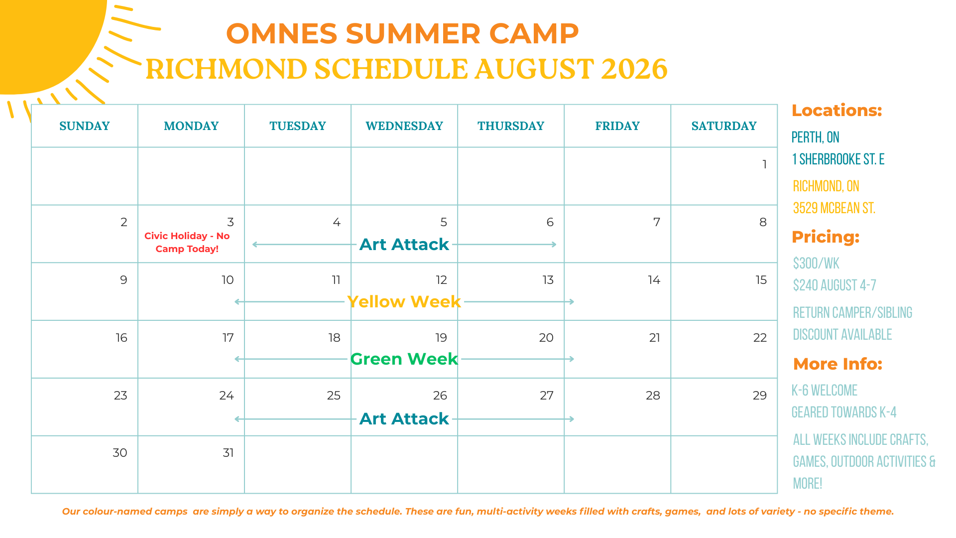 All camps will take place at 3529 McBean St. Richmond, ON. K0A 2Z0